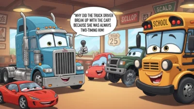 Puns & Wordplay10 Min Read Lily PunstononMarch 16, 2026 390+ Best Jokes About Trucks That Will Keep Every Driver Laughing The rumble of a diesel engine, the endless highway stretching under a golden sunset, and the steady rhythm of tires rolling across miles of…